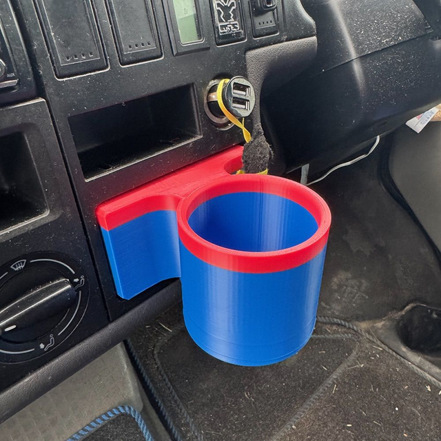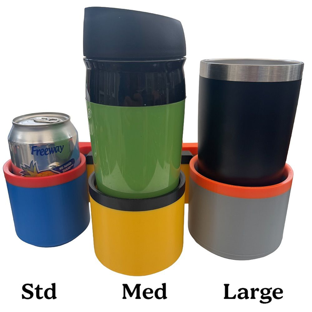 These are custom cup holders that replace the front plate/handle on late facelift T4 models. There are 4 sizes to choose from. The standard size fits 330ml cans, 500ml bottles and a large costa. Medium is a looser fit for Large Costa size cups and bigger flasks. The Large version will fit most pint size tumblers such as Yeti Ramblers. XL is for those of you that have the massive Stanley style cups!