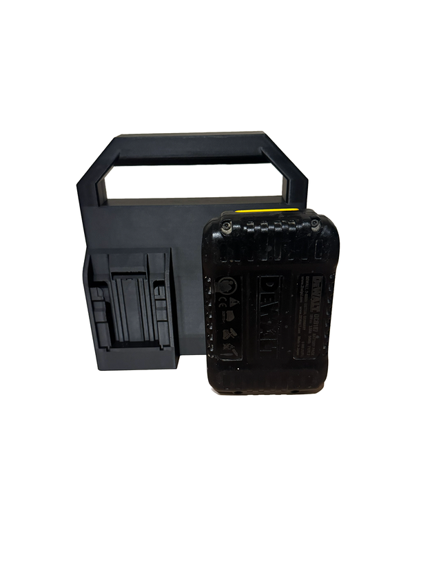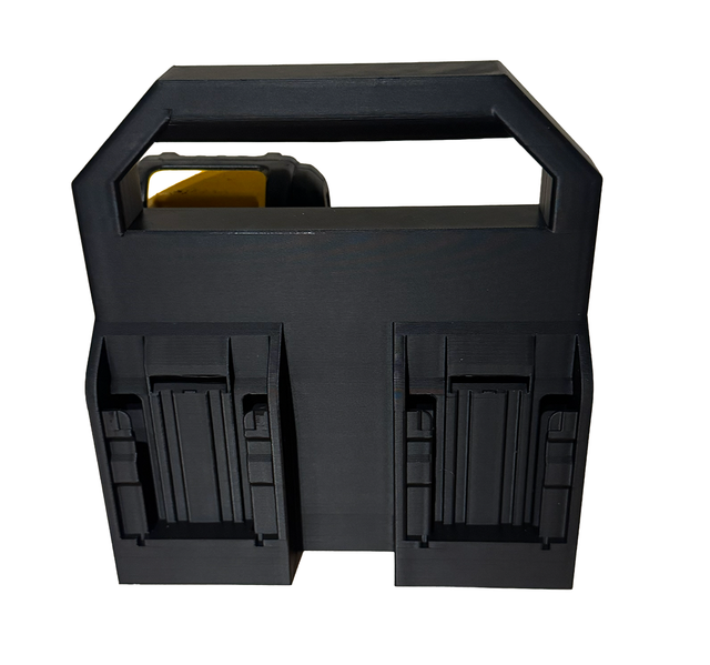 Carry your DeWalt 18v batteries safely from your van or shed to where you need them. This Battery Caddy holds 4 DeWalt 18v batteries or third party equivalents. It is made from a hard durable plastic and each holder has a satisying click when a battery is placed in it so you know your expensive batteries are secure. Perfect for the home handyman or professional alike.