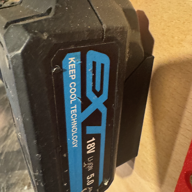 Wall mount to fit Erbauer EXT18v battery range. These mounts keep your batteries tidy and secure on the wall of your shed, garage or van. The batteries lock into place when inserted into the mount ensuring they will not come out unless you want them too.